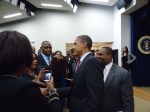 “The President of the United States, President Barack Obama.” Yes, President Obama did speak to us and it is a moment that I will never forget. He chided DuBois for having him speak after Chaplain Black. He thanked us for our prayers, asked that they continue and shared about his personal prayer life. He talked about the importance of education and the results of his administration these past three years. Afterwards, he shook hands. Yes, he shook my hand. I joked with attendees that I would never wash my hand again. “I don’t know how I’m going to get home because I can’t use this hand to drive,” I continued. And then he was gone.